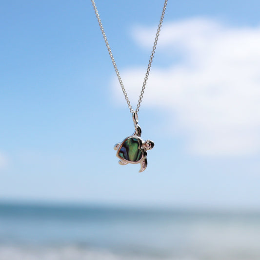 Sterling Silver and Pāua Turtle, Starfish + Pearl Necklace
