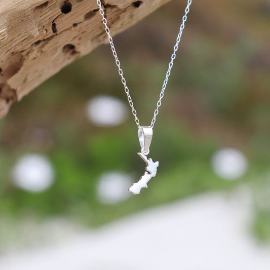 Sterling Silver NZ Map Necklace