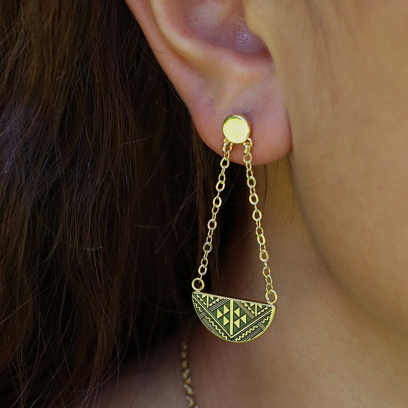 Each piece is made from fine brass dipped in 18KT Gold or Sterling Silver, covered with a clear tarnish-resistant coating to protect them from the elements.