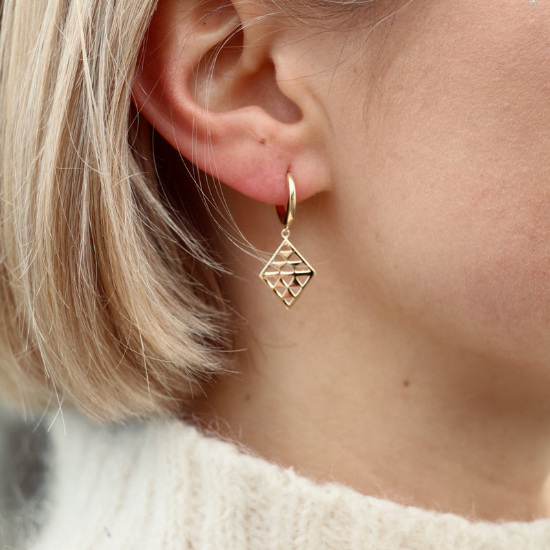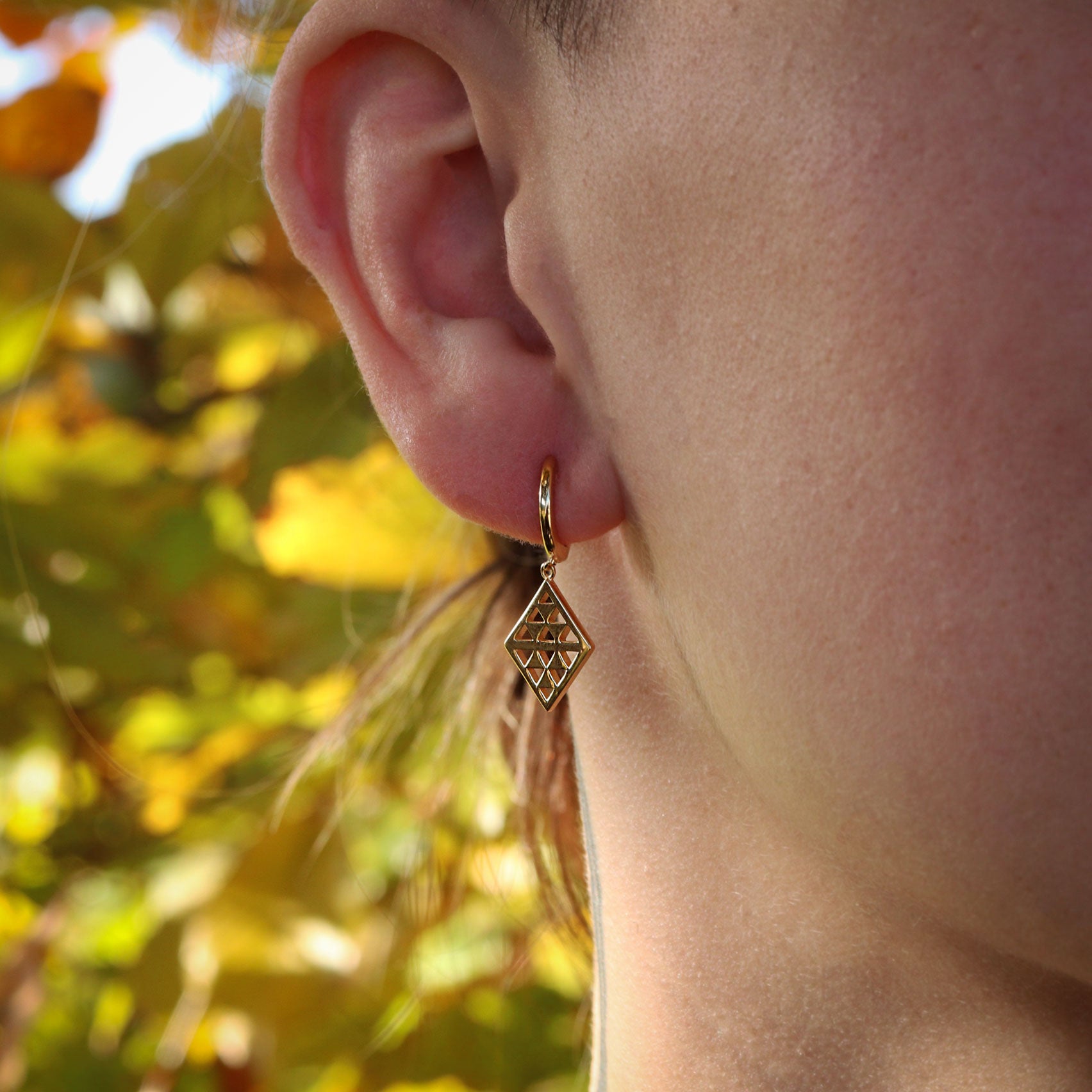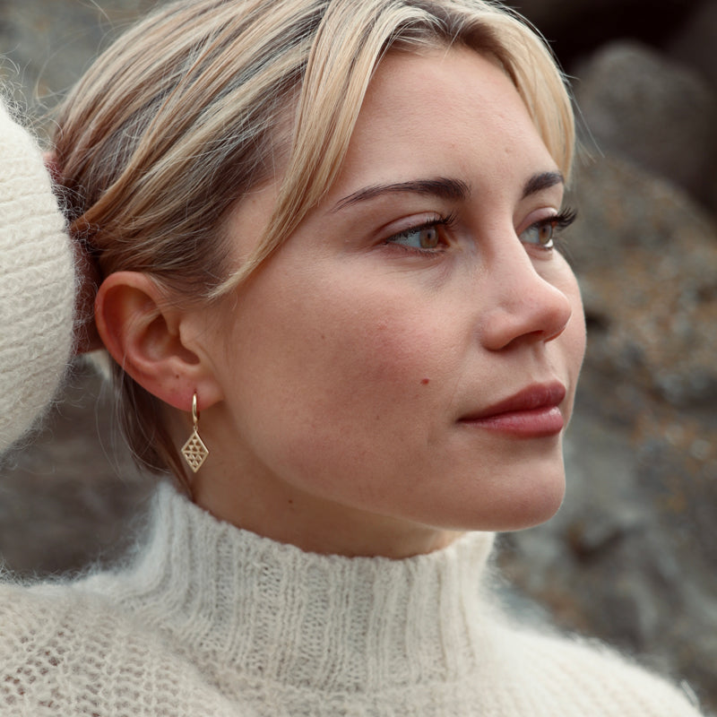 The Niho Pendant Huggies feature the niho taniwha design — symbolising strength,