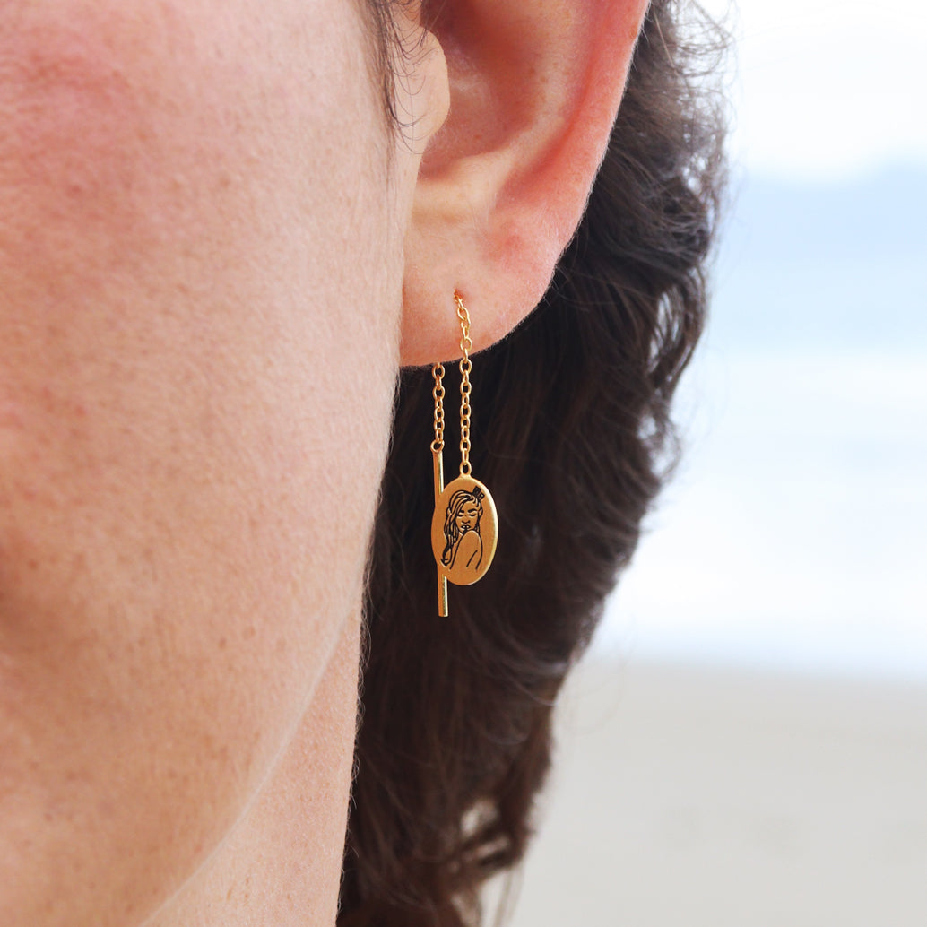 Celebrate strength, beauty, and the spirit of wāhine toa with our elegant Oval Wāhine Thread Earrings. Featuring a beautifully crafted oval pendant with a delicate silhouette of a wāhine, this design symbolises resilience, grace, and the deep connection to whakapapa (heritage).