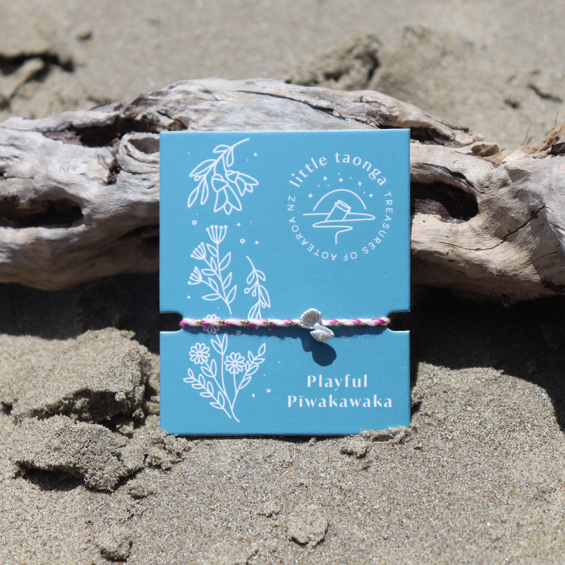 Little Taonga Playful Pīwakawaka Rope Bracelet: A celebration of joy and curiosity.