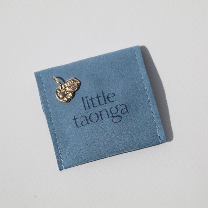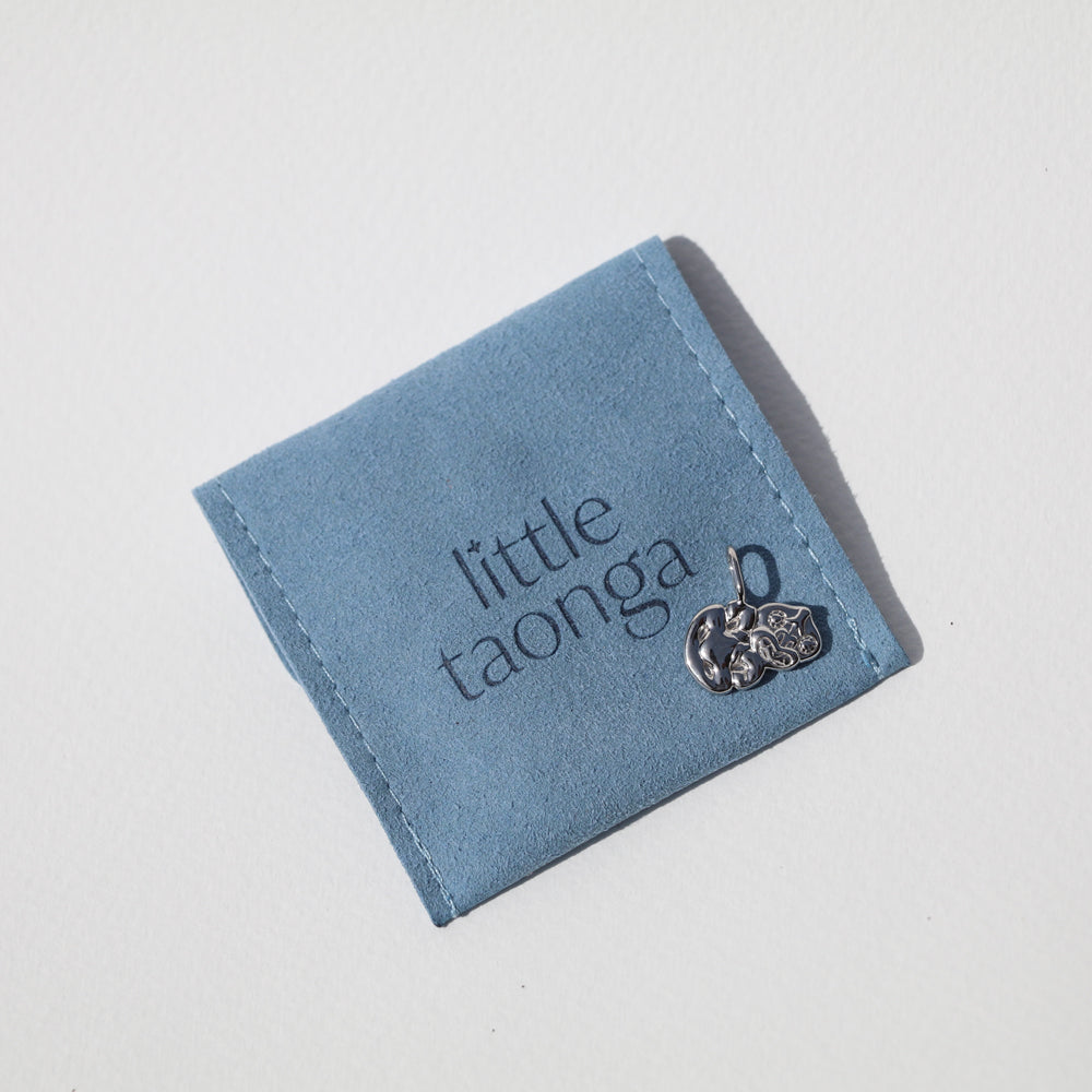 An individual charm, packaged in a Little Taonga soft velvet pouch.