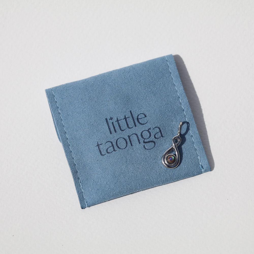 An individual charm, packaged in a Little Taonga soft velvet pouch.